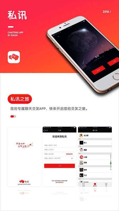 《私讯》是一款聊天信息安全更加完善的手机交友软件,这款软件不仅拥有极简的聊天界面,更可以为你提供终生免费的在线聊天服务哟!赶快下载软件开始你的聊天吧!