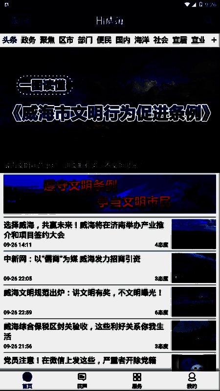 hi威海app是威海人自己的新闻客户端,hi威海新闻客户端是一个权威的信息发布和公共服务平台,hi威海新闻客户端致力于彻底改变威海人获取新闻资讯的传统模式。