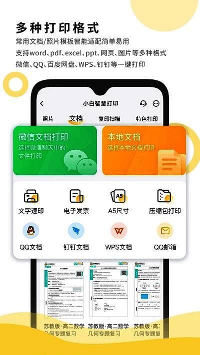 1.手机一键上传文档,各大app的文档不用传来传去就能打印出来。