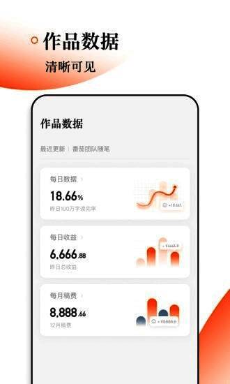 1.数据查看功能,包括作品日数据、日收入、月版税等数据查看