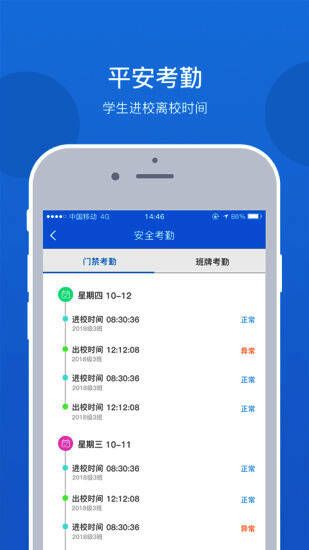 乐陪校园app是一款智能校园服务客户端应用,乐陪校园手机版方便家校互动沟通,可以直接在手机上看到学生进出校园的时间,让家长可视化孩子的行为轨迹,非常的实用。