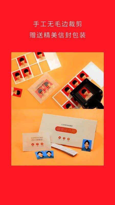 Camera360最美证件照最显着的特点就是集拍照和线下冲印服务为一体,只要是Camera360会员就可以在线下单(可供多种照片版型和尺寸选择),亲自制作证件照。值得一提的是 Camera360 还打通了软件平台的 O2O 服务模式,针对国内版本提供在线下单-冲印制作-送货到家的服务,强势冲击传统证件照服务行业。