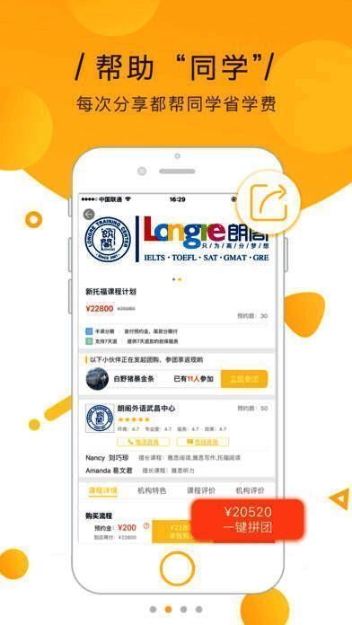 4、已经连续2次没考过托福了,朋友说我是托福的终结者怎么学也没用。后来无意中通过半课报名了新思达的课程,发现机构里面的老师讲课很不错,让我瞬间提升了一大截,我这么笨的人都一下子就考过了;