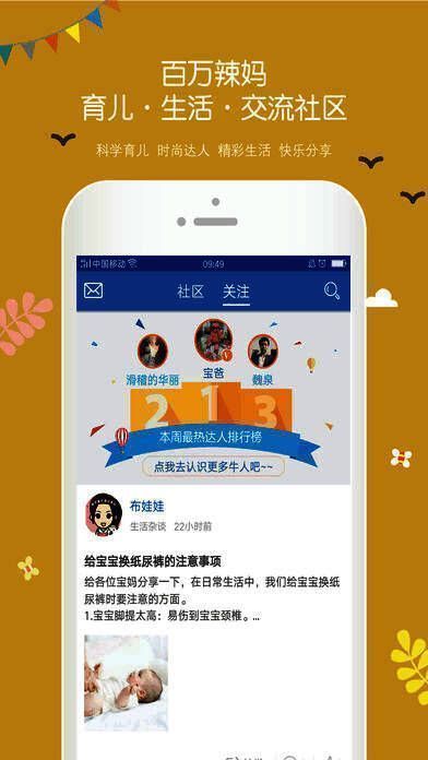 4、育儿社区:育儿社区是妈妈育儿知识获取、交流分享的贴心小集体。是针对于妈妈育儿、时尚、生活、美食、健康、八卦、情感等精细化定位学习沟通的交流助手。
