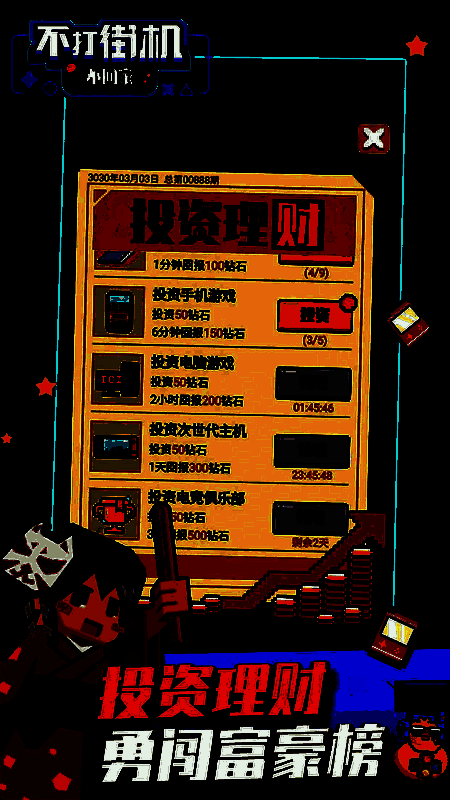 《不打街机不回家》一款像素风的模拟街机游戏,而且在游戏中,玩家需要经营自己的街机游戏厅,在享受游戏的同时,玩家可以回忆起自己快乐的童年,吸引更多的客人来玩,并且购买了各种街机游戏设备供客户回忆和体验,也会在游戏期间带来各种实惠,玩家需要不断赚钱,扩大店铺规模。