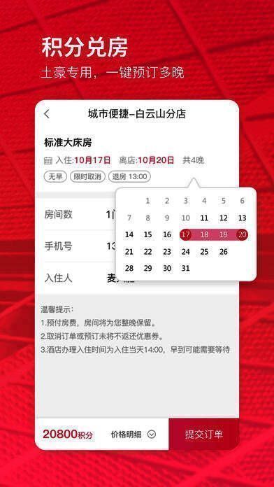 3、积分兑房:土豪专用 一键预订多晚;