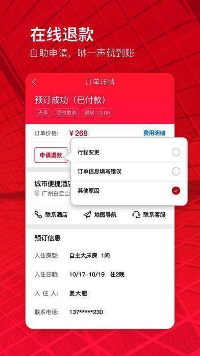 1、在线退款:自助申请 咻一声就到账;