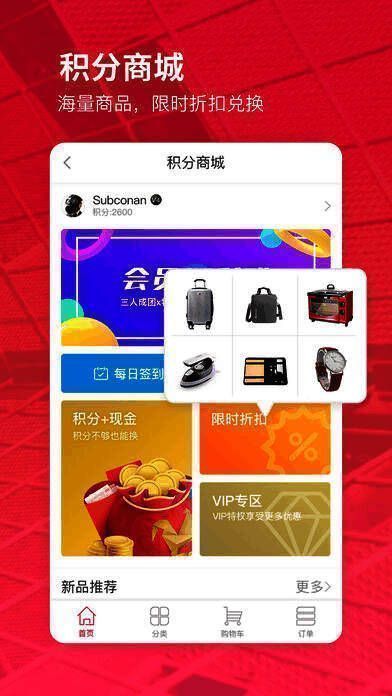 2、积分商城:海量商品 限时折扣兑换;