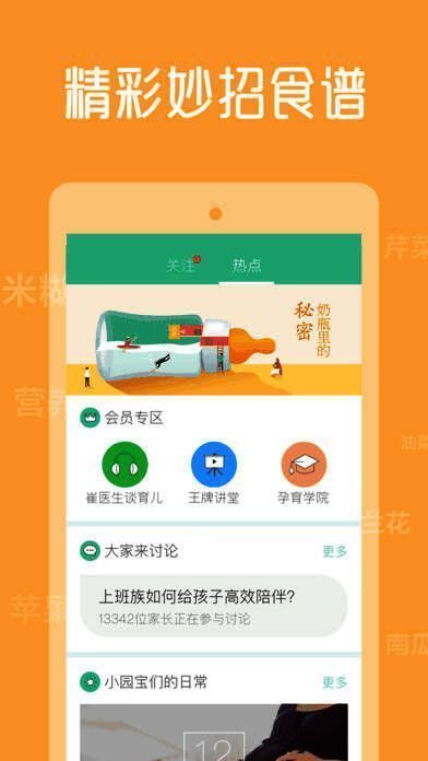 8、辅食食谱:这里有同龄宝妈的最新辅食食谱分享,宝宝吃什么不再焦虑;这里还有同孕龄妈妈的孕期食谱分享,产妇吃什么不再苦恼;