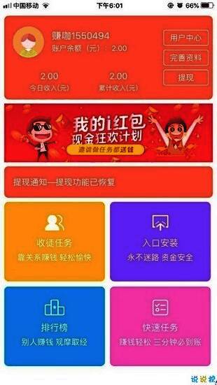 i红包是一款专注于任务赚钱的软件!用户可以通过每天登录免费获得好处,平台上也拥有许多精彩有意思的任务,任务数量很多,种类繁多用户们可以完成各种任务来赚取丰厚的佣金,还可通过在线推荐和邀请朋友来赚取丰厚的佣金!