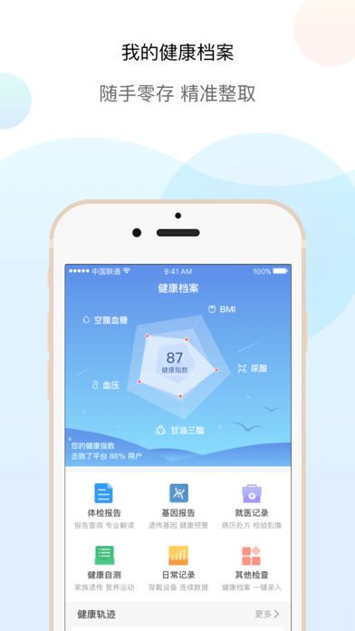 1、体检报告:手机一键查询公立医院体检报告;
