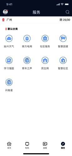 多样化的服务分类,民生、天气、南方电网、社区服务、党员教育等等;