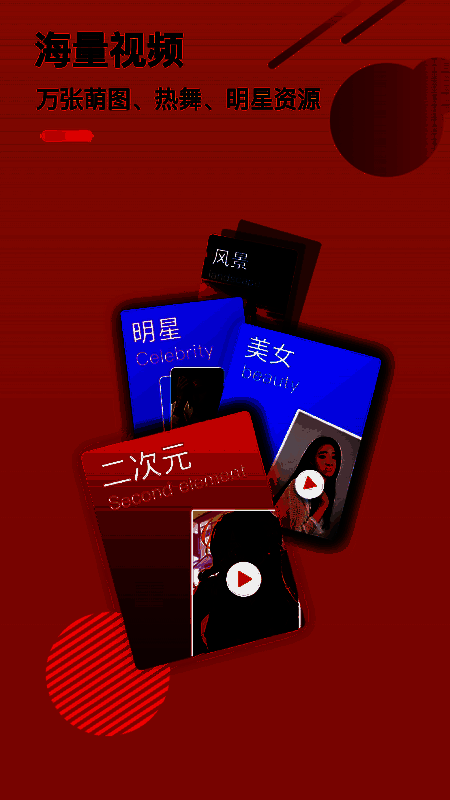 4、海量资源:热门动漫、影视、游戏、明星、风景、视觉特效、红人、萌宠等多个分类随你挑选!