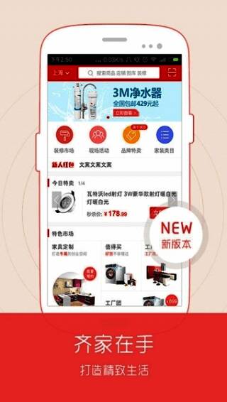 手机家装购物服务软件,房屋装修设计、买材料、买家居用齐家网就对了,齐家网专注于家装、建材,家居等领域,为用户提供非常专业一站式家装解决服务,让你家装不用愁,上齐家网帮你搞定一切。
