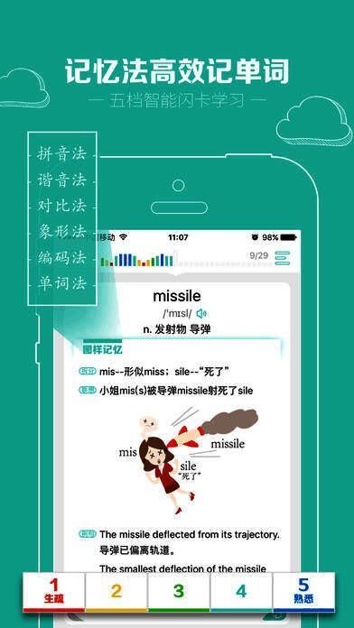 专为年轻人准备,界面清新优雅,行云流水般的学习体验,“闪卡”学习模式,5级记忆度辨识,记忆法学习分享,随时记录随时分享;