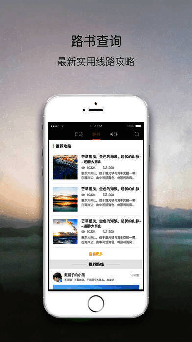 5、发布足迹:发布带有位置的足迹照片,分享户外之旅,户外交友,穷游旅行也精彩。