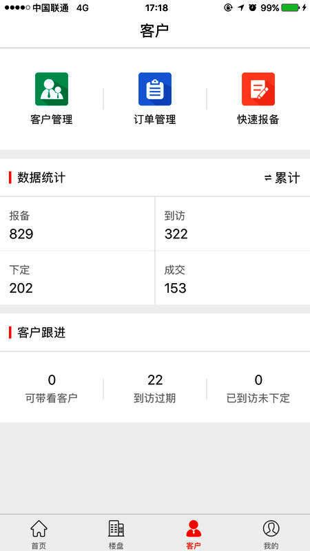 4、智能跟踪服务:全程跟踪报备、到访、签约、结佣,时刻掌握项目进度;