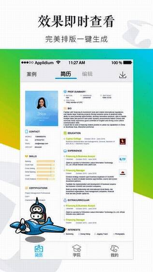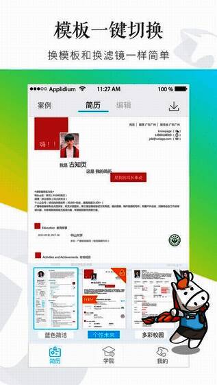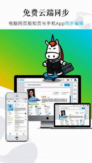 知页的电脑版与手机版的数据即时同步,独有的所见即所得简历制作方式。
