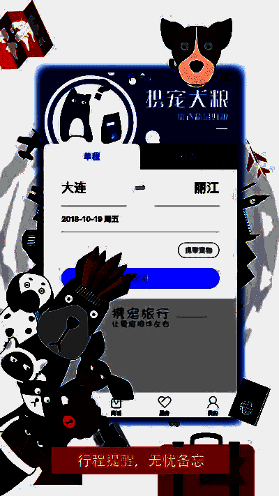 携宠旅行是一款养宠物必备的app,现在养宠物的人越来越多了,可以一家人都出去旅行想带着宠物,这个时候我们就可以在软件上给你家主子定一张飞机票,是不是非常的方便了。