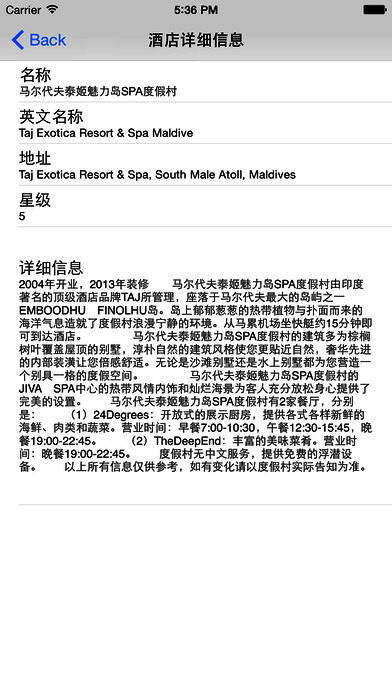 2、酒店全部中文标注,并提供酒店详细描述;