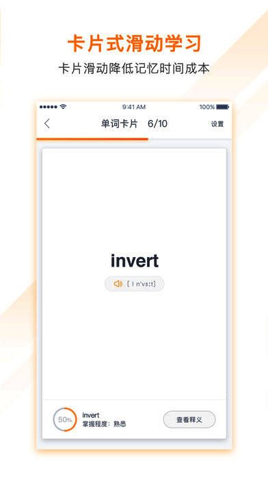 轻轻一划背诵完成,左划完成本轮记忆,右划查看单词具体内容,操作如此流畅简单;