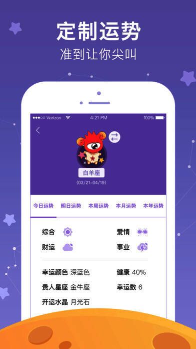 1、【星座运势】每日零时更新最新最权威星座运势,可定制专属星座运势,随时随地了解开运指南,把好运随身携带!