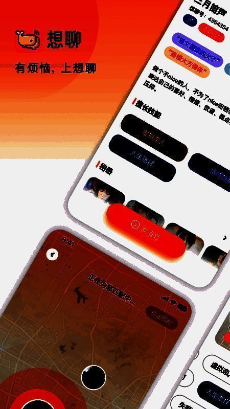 《想聊》是一款对于社交的小伙伴们来说质量十分不错的手机在线交友软件,这款软件的作用就是可以让你快速找到志同道合的用户,可以有效缓解你的压力,还可以在这里找到洗喜欢或者有点心动的小哥哥和小姐姐哟,这些都是缘分,千万不要错过哟!感兴趣的小伙伴们赶快来下载体验吧!