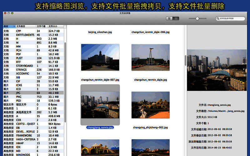 2、快速计算出每种类型文件数目和占用磁盘大小;