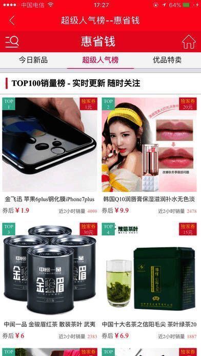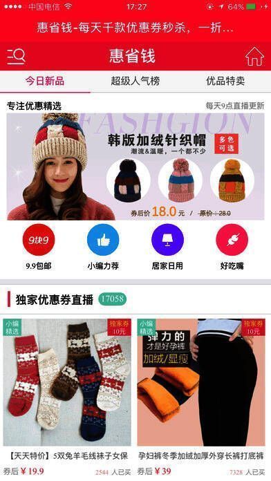 1、惠省钱是淘宝购物必备软件,我们每天会分享一些淘宝天猫秒杀,特价内部券商品;