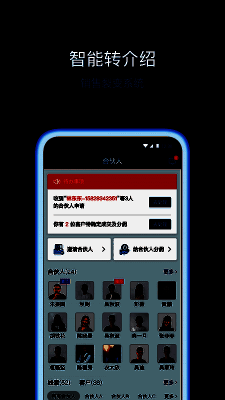 员工的获客和跟进客户情况,生成图谱,提高管理人效。