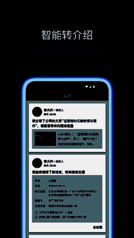 全局推送线索、客户、文章、推内容 ,支持快捷操作。