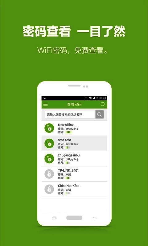“wifi密码查看神器苹果版”是WiFi密码管理工具。使用WiFi密码查看器,智能手机用户可以查看连接到机器的WiFi信号的密码(需要root权限),还可以查看保存在WiFi联盟云中的周边WiFi的密码。WiFi密码查看器是学生和商务旅行者的必备工具。