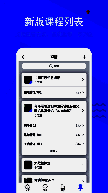 学习通软件下载是一款非常好用的自主学习平台。基于微服务架构,构建了课程学习、知识传播、管理共享等功能,用户可以在该软件上学习到很多知识。借阅查询、电子资源搜索下载、图书馆信息浏览、学习学校专业课程、小组讨论、查看学校通讯录等功能也可以帮助用户更好的学习。