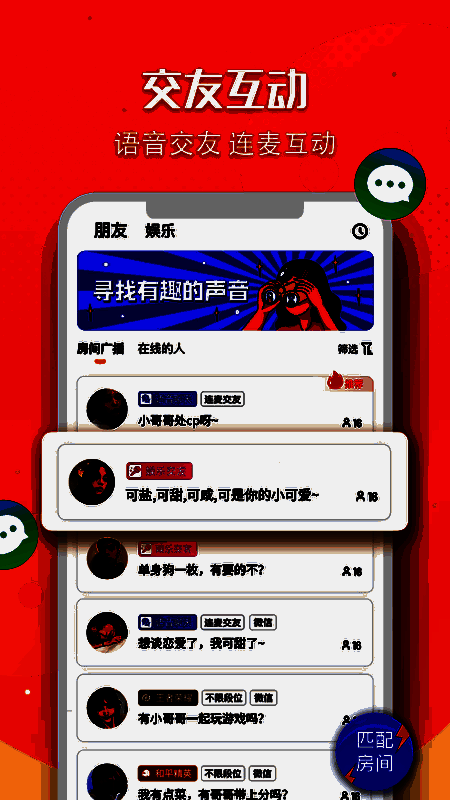 它不仅功能丰富,而且有简单大气的界面供您使用,支持匿名约会,有多种方式和方便的操作等,你也可以找到志同道合的小兄弟姐妹一起开黑玩耍游戏,这很容易开始,值得一试。