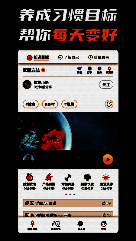 一款十分优秀的人生规划软件,让你从此刻开始不再迷惘,让你能够准确找到人生的方向。帮助你努力,让你养成良好的习惯,每天都在进步。这里还有很多励志好友,和他们结识,相互交流吧!