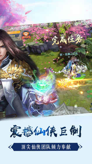 1、动画式剧情、超爽全技能攻击,超强套装搭配,百种仙宠、万种技能,创新组合,真人组队,带来前所未有的自由体验。