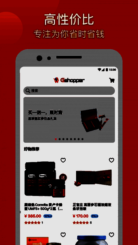 全球的好货都在这款软件之中来展现给大家!在《Gshopper》这款以最便宜的价格就可以来买到自己喜欢的商品的软件之中,来精心的挑选自己喜欢的优质商品吧。还可以来通过这款软件来得到不错的折扣以及优惠哟,非常的实惠!感兴趣的小伙伴赶快来下载体验吧!