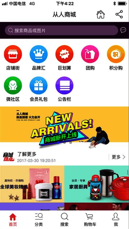 从人商城app是一个出色的移动电商平台,也属于新型分享商城平台。从人商城app与很多商业平台达成了联盟合作、致力于搜索全球特色产品,积极打造舒适、生态性特色产品生活平台。还有许多不错的优惠券跟促销活动,对于大家来说还是比较划算的一种网购体验,非常适合在生活中使用,赶快来下载吧!