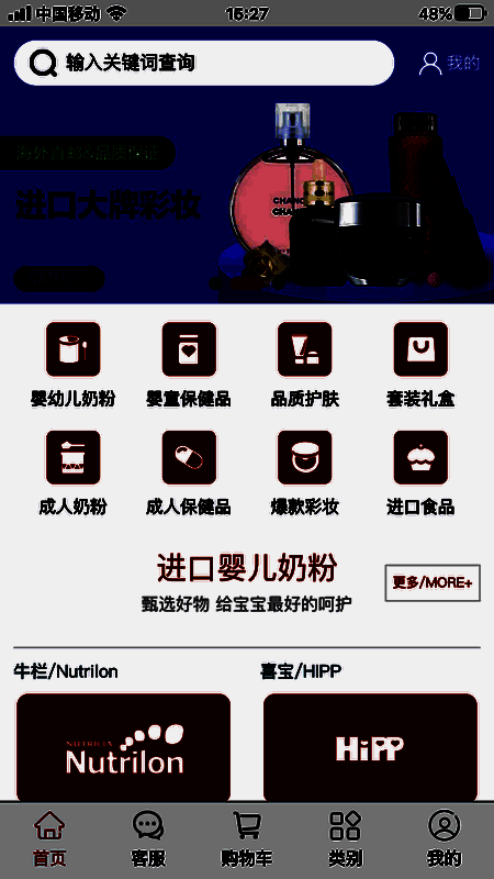 2、商品品类有:婴幼儿奶粉、保健食品、大牌彩妆护肤品等;