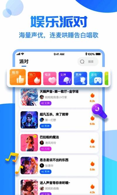憨憨星球专为游戏爱好者们打造的一个语音开黑社区平台,这里汇聚了来自各地的游戏高手,随时可以匹配畅玩,还有很多其他玩法可以体验,k歌、群聊以及相亲等多可以选择,轻轻松松就能满足你自己的需求了,而且不管你什么时候来,这里都是可以找到一个人陪你聊天玩儿的,有需要的小伙伴可以在这里感受一下,相信你也会用到上这款软件的。