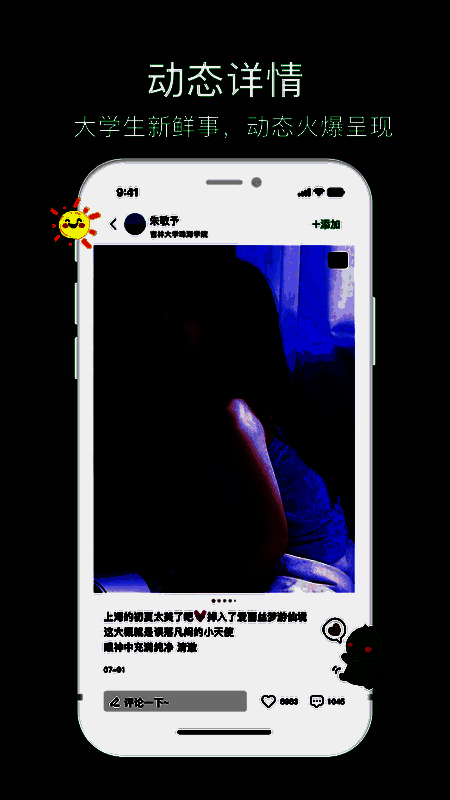 1、专注于“00后校园”实名制校园社交领域,打造思想活跃、玩法多种多样的校园社区;