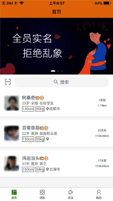 3、平台所有用户都要经过实名认证,才可想匹配的用户发送喜欢或聊天消息。