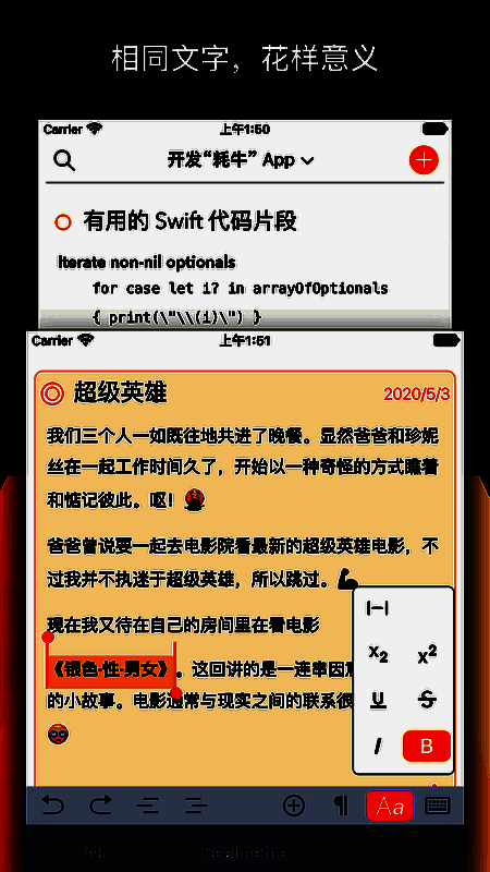 作为唯一款注重时间跨度的笔记 App,它能够完美迎合各种项目需求。将它用于个人项目,记录您想尝试的食谱;或者用于工作中的重大项目,计划您的下一次会议,检查您的日常待办事项。