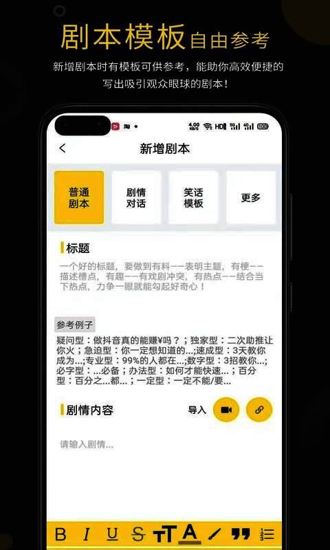 通用户自由编辑自己剧本,自己设置标题和内容。