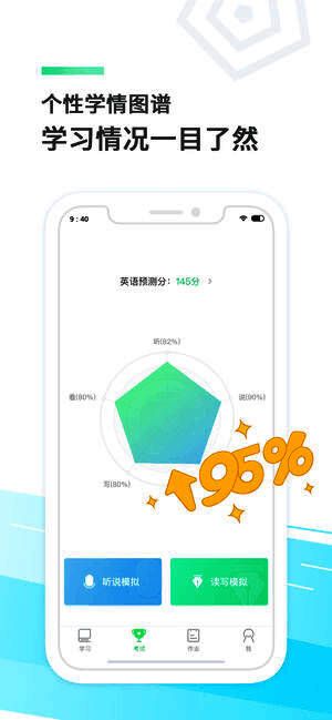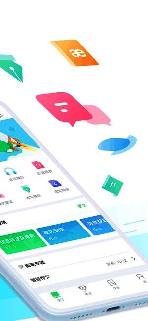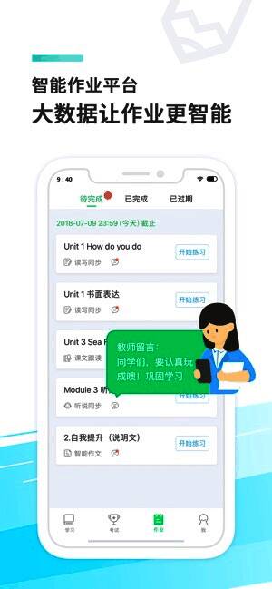 3、 三段三步高效提分:匹配学校单元同步、阶段复习和寒暑巩固的教学频段,智能化支持自主学习(学)、作业训练学情分析(练)、错题订正巩固(订)的学习路径,有效提高听说成绩。