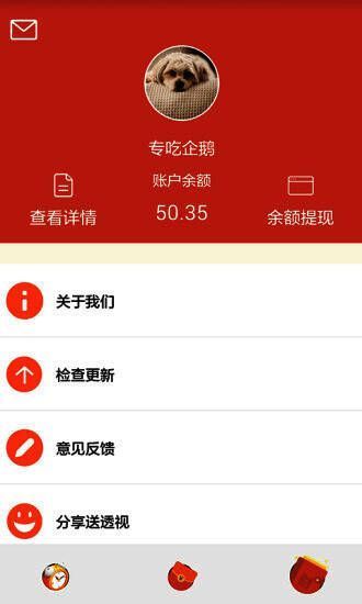 开心红包app是一款非常有意思的抢红包软件。开心抢红包软件上每天早上都会为您准备红包等你来抢,而且还有抢红包提醒功能,有红包抢了马上就知道,不错过任何一个红包!