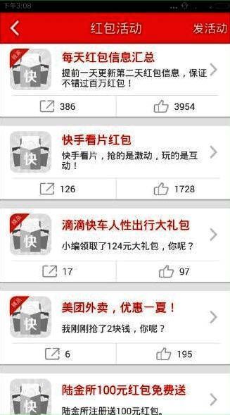 3、众多品牌红包活动等你来抢,滴滴打车红包、微信红包、支付宝红包、京东红包、58到家红包、投之家红包、肯德基红包、麦当劳红包、饿了么红包、百度外卖红包、百度糯米红包、百度地图红包、大众点评红包、河狸家红包等等,这里应有尽有。