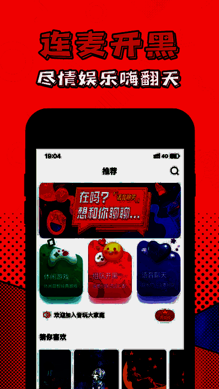 3、左右一滑,就能找到你喜欢的声音和有趣的人,还可以和TA一起合唱一曲、演绎一段;