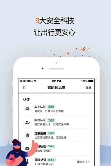 3、同时,滴滴顺风车还对乘客开展了微信授权登录和和微信支付的验证,对车主有着驾驶证行驶证的正规审核流程,同时为每一单购买了50万元的保险。