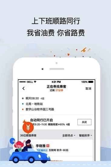 一款大众手机拼车应用,滴滴顺风车司机端和全国三百余座城市间无缝预约,单单都是好生意,再也不用担心拉不到客。